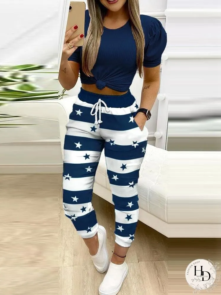 These leggings have a comfortable elastic waistband and adjustable drawstrings. Stars stripes print and pocket design.