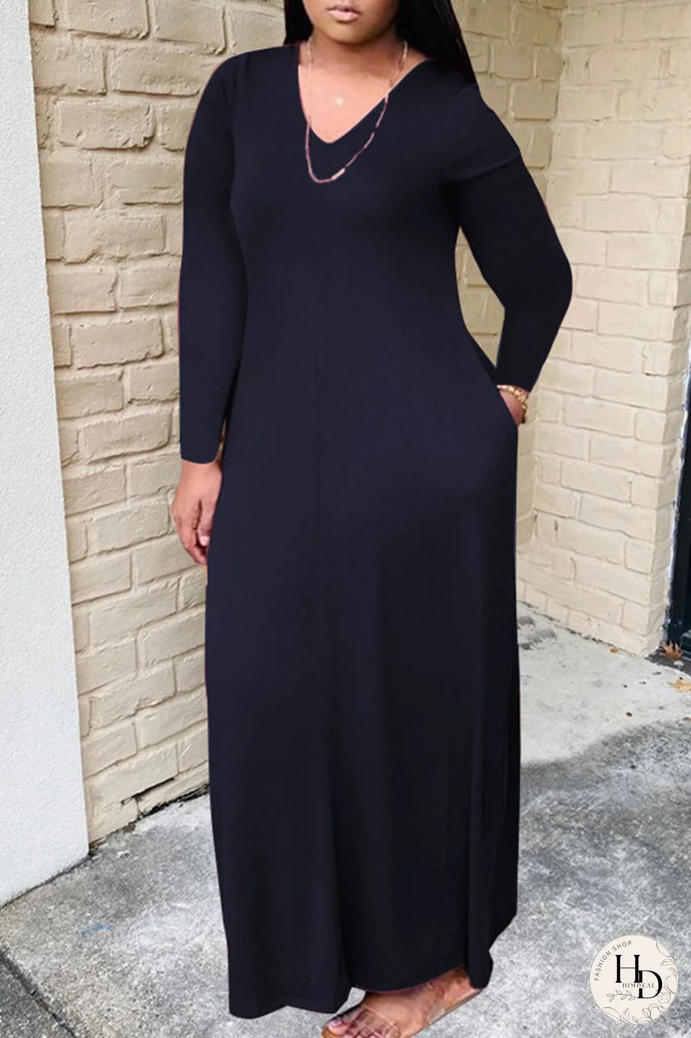 | Product Name | Black Casual Solid Patchwork V Neck Long Sleeve Plus Size Dresses |