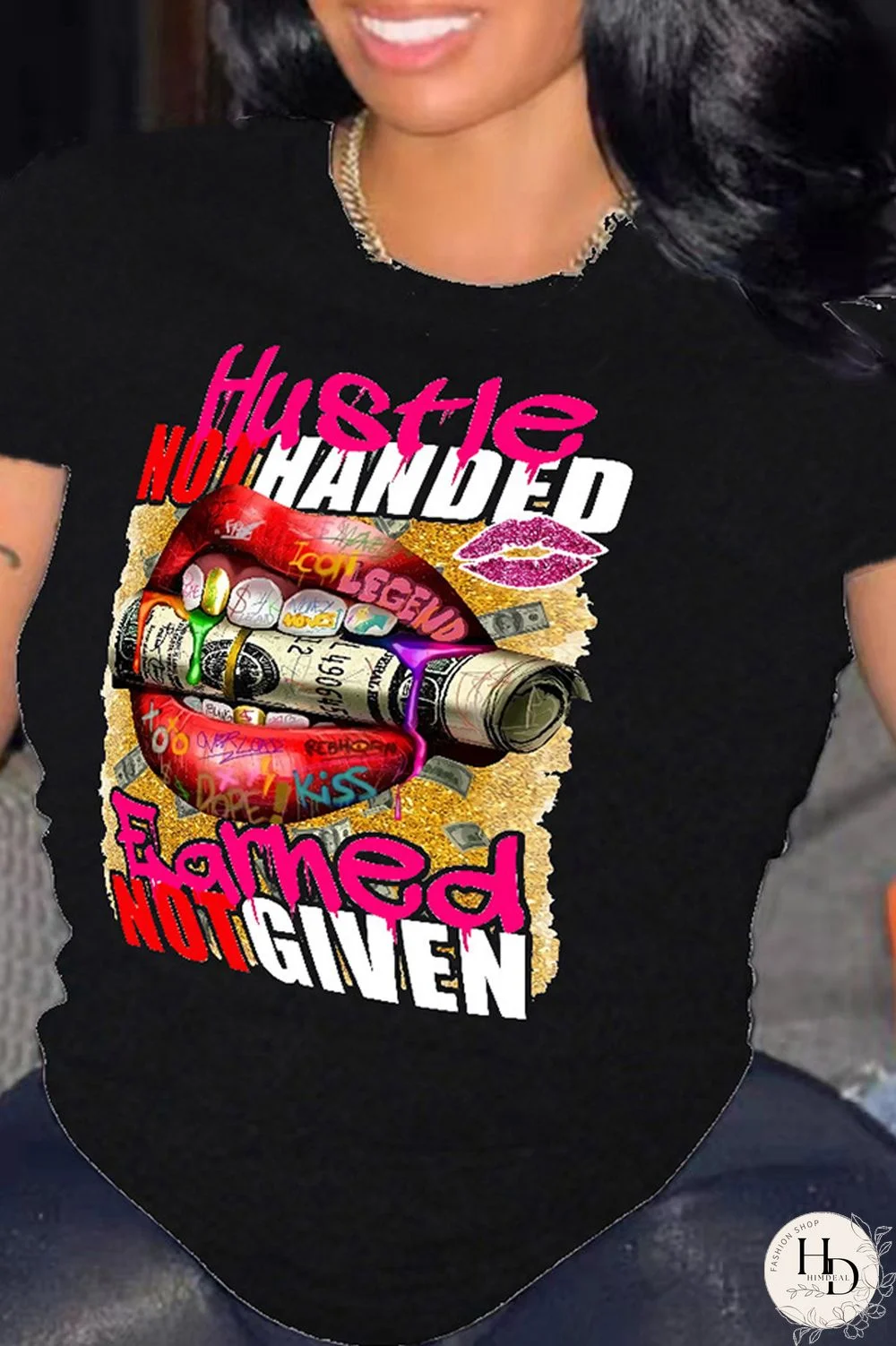 | Product Name | Black Fashion Casual Print Basic O Neck T-Shirts |