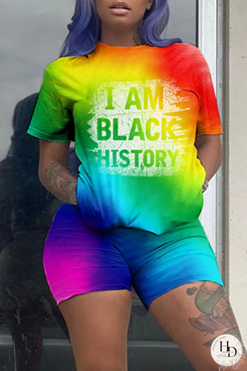| Product Name | Multicolor Fashion Casual Gradual Change Letter Print Basic O Neck Short Sleeve Two Pieces |