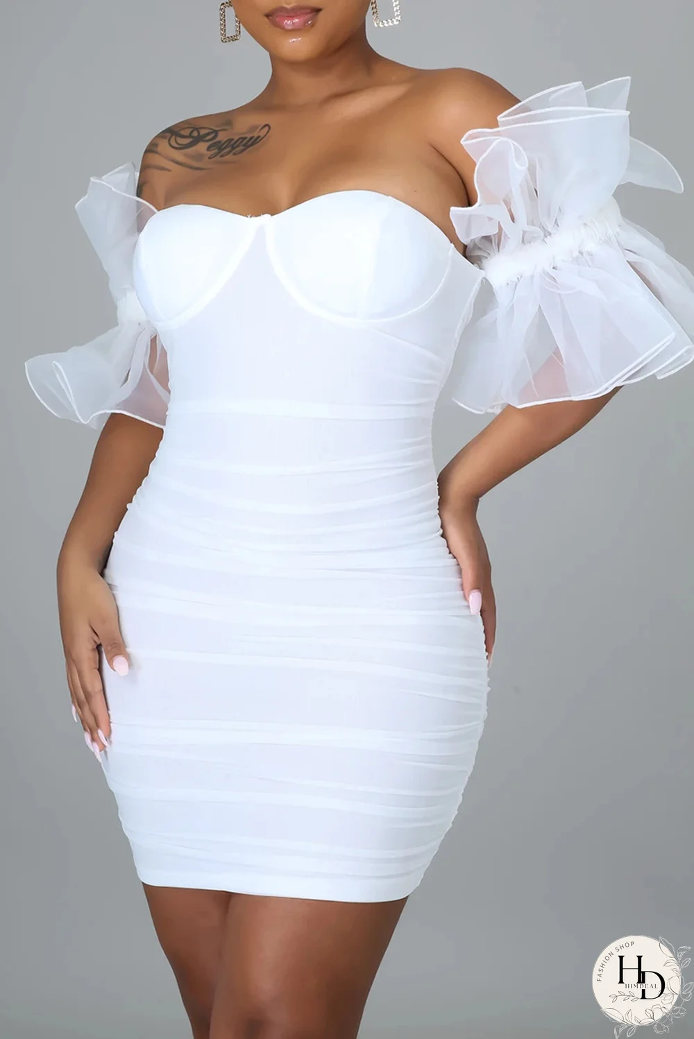 | Product Name | White Sexy Solid Mesh Off the Shoulder Pencil Skirt Dresses |