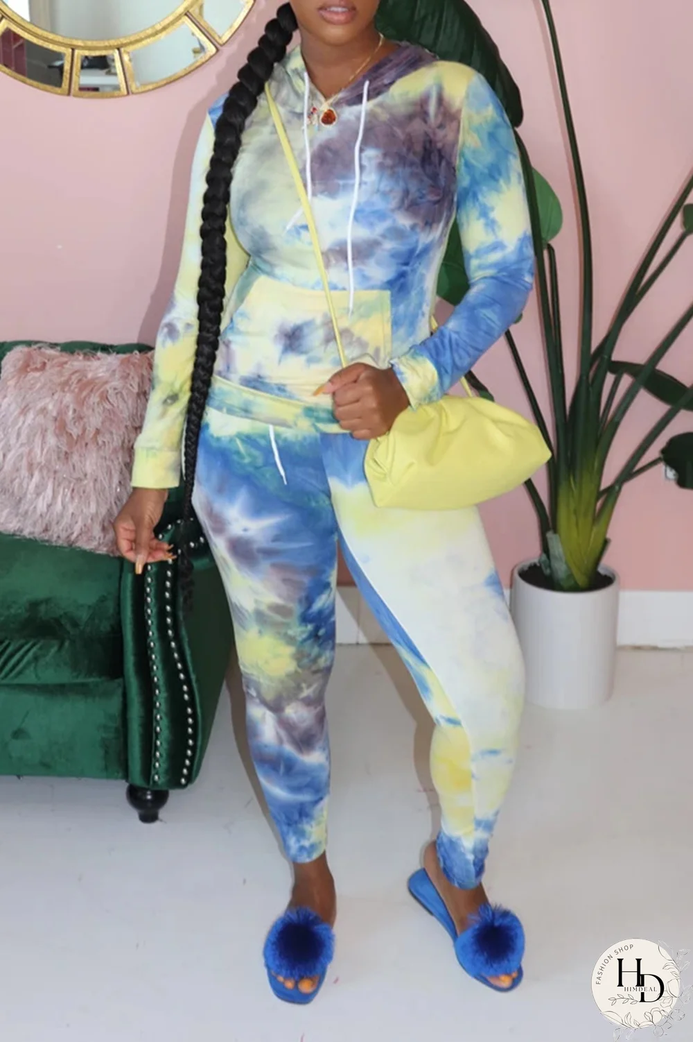 | Product Name | Yellow Casual Patchwork Tie-dye Hooded Collar Long Sleeve Two Pieces |