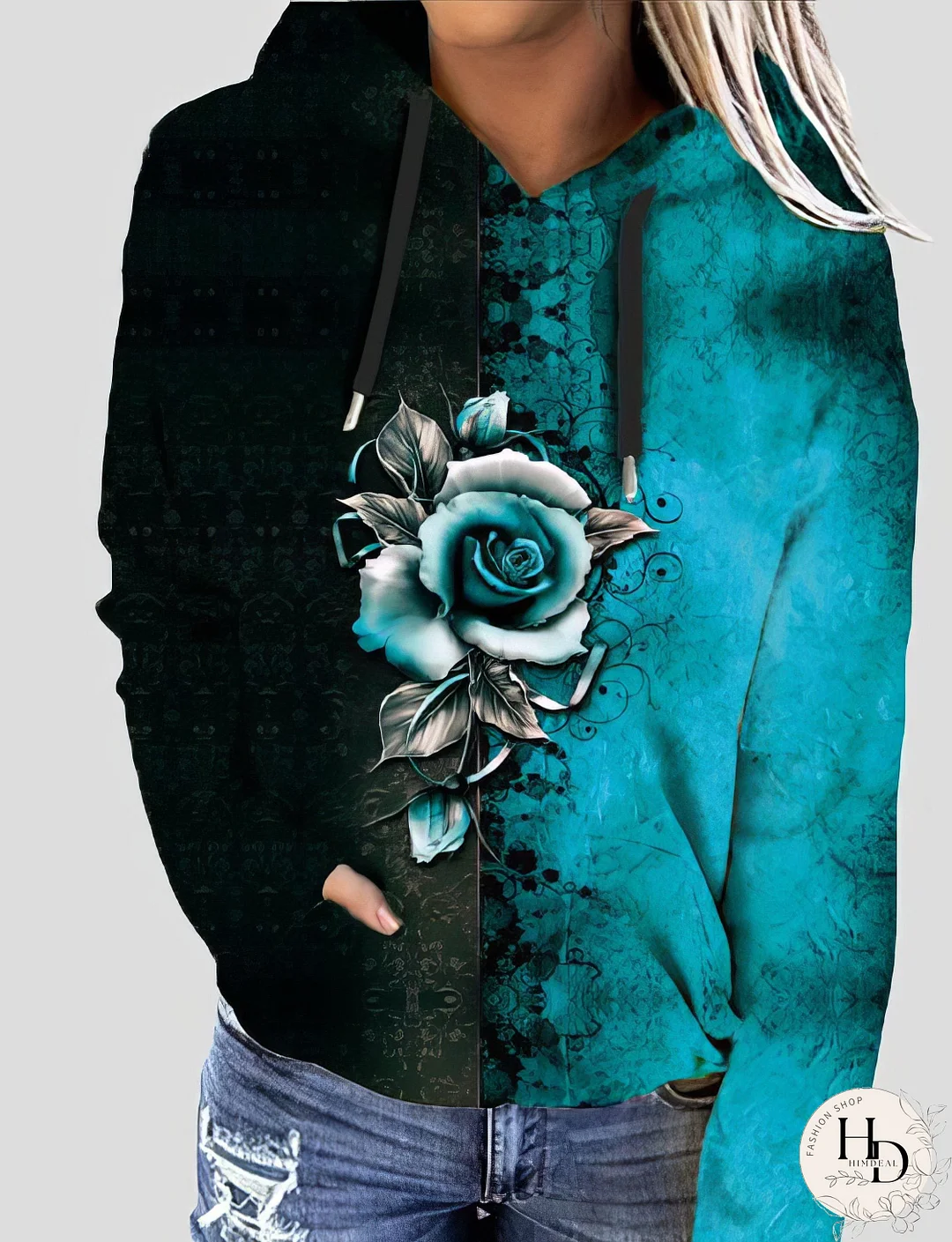 Elevate your style with this elegant dual-tone hoodie featuring a stunning rose print. The captivating design combines a rich black with vibrant pops of color (red, purple, or green), creating a unique and fashionable look. Soft, comfortable material and long sleeves ensure all-day wear. Add a touch of romance and sophistication to your wardrobe today!