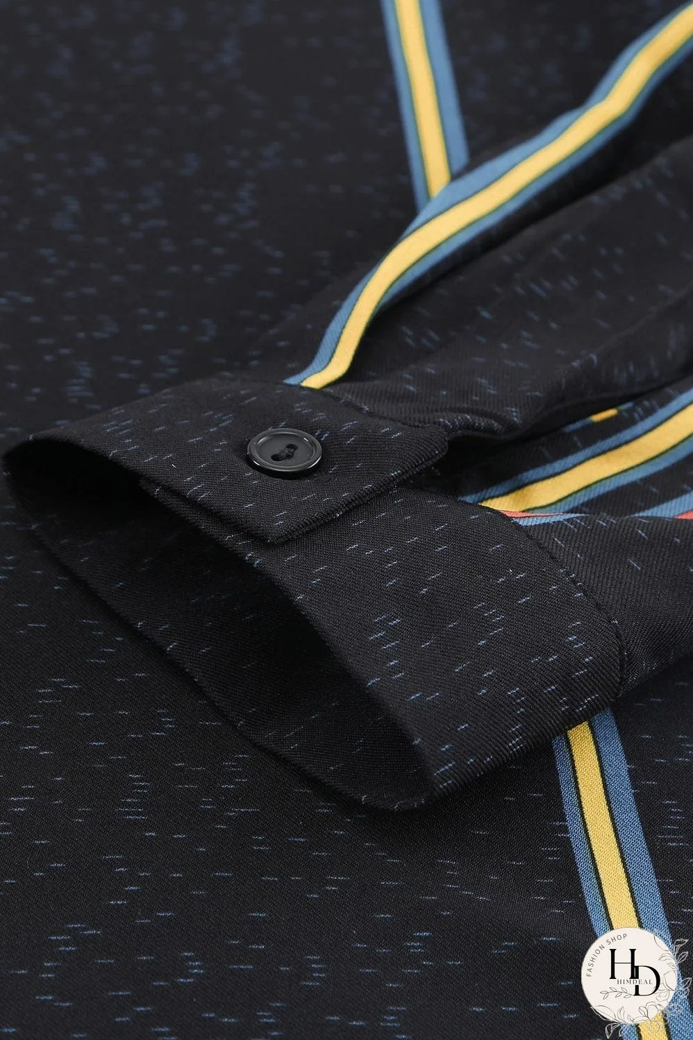 Elevate your style with this chic striped blouse! Featuring a flattering V-neck, long sleeves with cuffed details, and a comfortable relaxed fit, it effortlessly blends style and comfort. The vibrant multicolored stripes on a dark background add a pop of personality, making it a versatile piece for any occasion. Dress it up with your favorite jeans or layer it over a tank top for a casual daytime look. This versatile top is a must-have for your wardrobe!