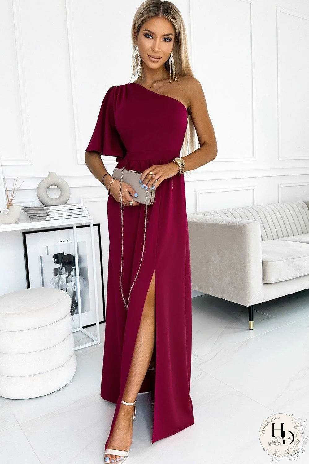 - Unique Design: Features a sloping shoulder design and a stylish slit for a modern and chic look