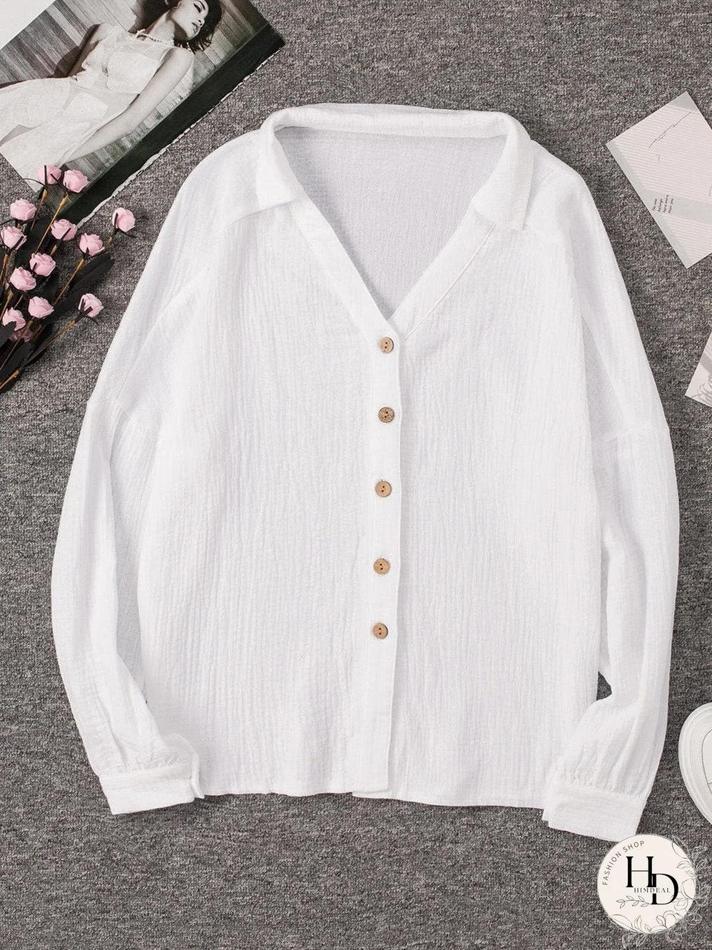 Elevate your style with our Cotton Linen Button Sleeve Blouse. This breezy, white blouse features chic balloon sleeves and a flattering V-neckline. Perfect for versatile styling – dress it up or down! The soft cotton linen blend ensures all-day comfort. Shop now and add effortless elegance to your wardrobe.
