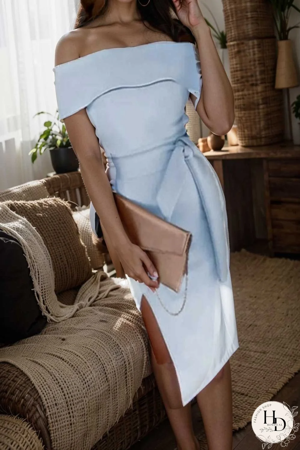 Whether you're attending a wedding, a work event, or simply going on vacation, this versatile dress will be your go-to choice. Elevate your wardrobe with this elegant midi dress that's sure to make you stand out from the crowd. Make a lasting impression and exude confidence with every step you take in our Elegant Off-Shoulder Midi Party Dress for Women!